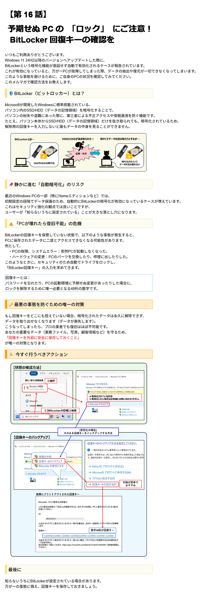 予期せぬPCの「ロック」にご注意! BitLocker回復キーの確認を
